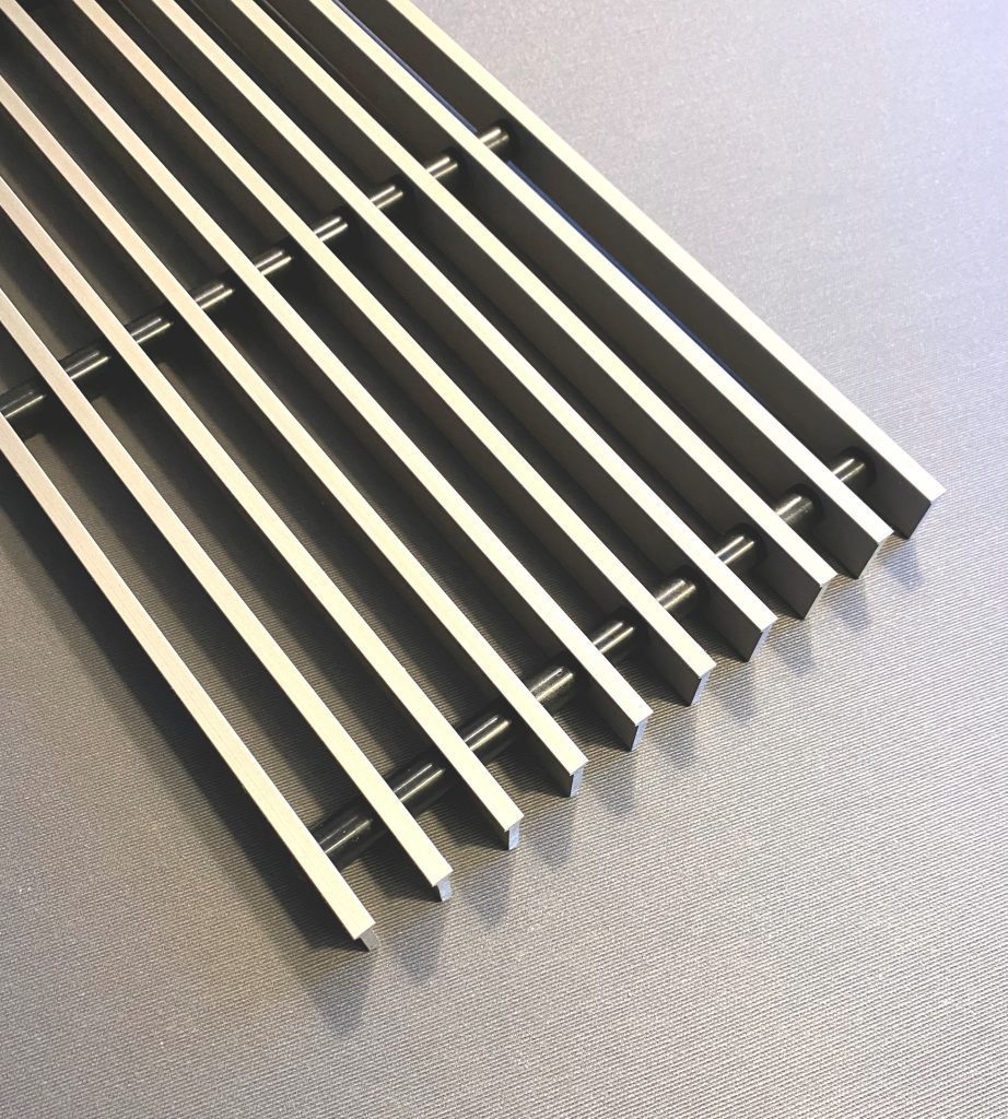 Vore lineære riste i ALU NATUR samles med en tværgående stang i stål, så den bliver stiv.